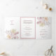 Convite Com Dobra Tripla Casamento de Código QR Floral Rustic Dusty Rosa Ro