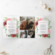 Convite Com Dobra Tripla Casamento de Colagem Floral de Fotos Blush Burgund
