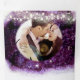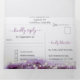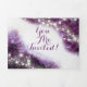 Convite de Casamento Triplo Elegante Tudo em Um de Cristal de Ametista Roxa inclui um cartão-postal de RSVP cortado e enviado. Destino praia, montanha, lago, Navio de Cruzeiro, conto de fadas mágico, mais temas de casamento.