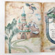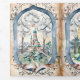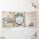 Convite de casamento do estilo conto de fadas feito em uma dobra colorida de água pastel. Fotos bonitas de dragão e castelo aquarela enchem os três lados deste convite de casamento de fantasia triplo. Personalize todos os campos de texto para seu anúncio especial de casamento.