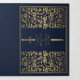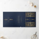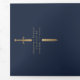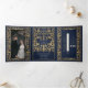 Anuncie seu casamento em estilo com este convite de fantasia medieval triplo! Este convite apresenta uma grande espada de ouro e flores, com uma foto especial do casal contra um fundo azul — a combinação perfeita de romance e aventura. NOTA: este design NÃO apresenta folha de alumínio real. A imagem de marcador de posição foi fornecida por Unsplash e NÃO está à venda; substitua-a pela sua fotografia.