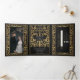 Anuncie seu casamento em estilo com este convite de fantasia medieval triplo! Este convite apresenta uma grande espada de ouro e florais, com uma foto especial do casal contra um fundo preto — a combinação perfeita de romance e aventura. NOTA: este design NÃO apresenta folha de alumínio real. A imagem de marcador de posição foi fornecida por Unsplash e NÃO está à venda; substitua-a pela sua fotografia.
