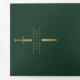 Anuncie seu casamento em estilo com este convite de fantasia medieval triplo! Este convite apresenta uma grande espada de ouro e flores, com uma foto especial do casal contra um fundo verde — a combinação perfeita de romance e aventura. NOTA: este design NÃO apresenta folha de alumínio real. A imagem de marcador de posição foi fornecida por Unsplash e NÃO está à venda; substitua-a pela sua fotografia.