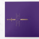 Anuncie seu casamento em estilo com este convite de fantasia medieval triplo! Este convite apresenta uma grande espada de ouro e flores, com uma foto especial do casal contra um fundo roxo — a combinação perfeita de romance e aventura. NOTA: este design NÃO apresenta folha de alumínio real. Dessplash forneceu a imagem de espaço reservado e NÃO está à venda; substitua-a pela sua foto.