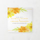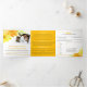 Amarelo quente, laranja, verde no branco marigold aqucolor art verão de casamento tudo em um convite. Personalize este convite de casamento de resposta destacável com sua própria foto, detalhes da cerimônia de casamento, agenda, alojamento e outras informações, assim como opções de refeições, respostas. Outros itens de casamento correspondentes estão disponíveis. © Original watercolor marigold floresce pintura à mão e design por Sarah Trett para www.mylittleedenweddings.com no Zazzle.