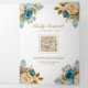 Convite Com Dobra Tripla Casamento de Foto com Código QR Dourado Azul Creme