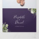 Convite Com Dobra Tripla Casamento de foto de verde botânico moderno roxo