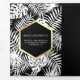 Amaze seus hóspedes com este elegante convite de casamento tropical apresentando lindas folhas brancas de palma folhagem com tipografia moderna e falsas bordas de folhas de ouro. Basta adicionar os detalhes do seu evento neste modelo fácil de usar e enfeitar este cartão com a sua foto favorita para torná-lo um convite único.