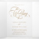 Convite Com Dobra Tripla Casamento de Script Elegante Delicado Dourado