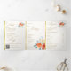 Convite Com Dobra Tripla Casamento de Script Floral Dourado Elegante