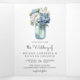 Convite Com Dobra Tripla Casamento do Código QR de Mason Jar, Peony Azul e