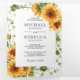 Incêndio aos seus convidados com este elegante tudo em um convite de casamento com lindos girassóis e tipografia moderna com placa RSVP online. Basta adicionar os detalhes do seu evento neste modelo fácil de usar e adorar este cartão com as suas fotografias favoritas para o tornar um convite único.