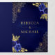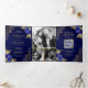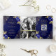 Convite Com Dobra Tripla Casamento do Código QR do Local Dourado Real Blue