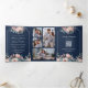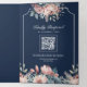 Convite Com Dobra Tripla Casamento do Código QR do Marinho Floral Dusty Blu