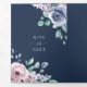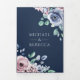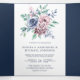 Convite Com Dobra Tripla Casamento do Código QR do Marinho Floral Dusty Blu
