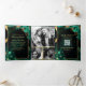 Convite Com Dobra Tripla Casamento do Código QR do Mint Green Floral Dourad