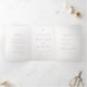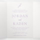 Um convite triplo de casamento elegante com um design clássico com seu monograma em uma fonte de script junto com seus nomes e detalhes em uma fonte de serifa tradicional.