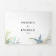 Mostre todos os detalhes do seu casamento com este moderno tema da praia triplo 3 em 1 convite de casamento com um fundo branco clássico, caligrafia azul-oceânica profunda e carateres cursivos e folhagem de palmeira tropical aquática com cartazes de madeira rusticada, cordas e peixes-estrelas aquáticas. Ela inclui uma foto do casal feliz e o convite para o casamento. Os convidados podem facilmente cortar o cartão postal RSVP e pop-lo no correio! Edite facilmente todas as informações com os detalhes do casamento usando o modelo fornecido. Barato de convites de casamento tudo em um que vão abominar seus convidados.