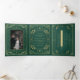 Convite Com Dobra Tripla Casamento Dourado e Emerald Elegante Tarot