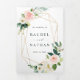 Tudo isso em uma tripla carta de convite para o casamento apresenta flores pintadas de aquarela em uma folhagem cor-de-rosa, branca e verde com uma estrutura geométrica dourada, adicione detalhes de casamento, rsvp e sua foto. Para personalização mais avançada deste design, clique no link "personalizar mais". Itens correspondentes também estão disponíveis.