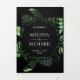 Convite Com Dobra Tripla Casamento Dourado Tropical Monstera Palm Black QR
