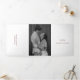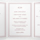 Um convite de casamento clássico de burgundy / wine triplo com um design simples e mínimo com seu monograma no topo e seus detalhes de evento cercados por uma dupla borda. As fontes se alternam entre um script elegante, um serif tradicional e fontes sans serif minimalistas. O painel esquerdo é a sua placa de inscrição e o painel direito é o seu cartão-postal RSVP. As costas têm sua foto favorita. Tudo isso em um triplo convite é excelente para um casamento formal.