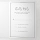 Simples modelo de Convite Tudo em Um Casamento com cartão rsvp e cartão de gabinete anexados, fazer este pacote de convite conveniente e econômico. O convite para o casamento mostra seu monograma em um círculo no topo e seus detalhes de casamento cercados por uma fina borda junto com seus nomes estão em uma elegante letra manuscrita. A parte de trás apresenta a sua foto favorita. Todos os elementos de design estão em cinzas médias e podem ser alterados na ferramenta de edição design. O cartão postal RSVP tem o seu endereço de correspondência no verso e os seus convidados são simplesmente cortados e enviados para você. NOTA: É necessário o postagem de primeira classe para o cartão postal RSVP. Carimbos postais não serão suficientes devido ao tamanho. O esquema clássico e tradicional faz esta design excelente para um casamento formal.