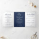 Convite Com Dobra Tripla Casamento Elegante de Foto do Monograma Azul do Ma