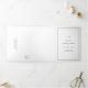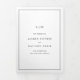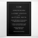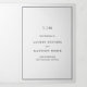 Simples tudo em um modelo de convite para casamento com cartão de rsvp e cartão de gabinete anexados, fazer este pacote de convite conveniente e econômico. O convite para o casamento apresenta um design moderno, mas elegante, com seu monograma de duas letras no topo e seus detalhes cercados por uma fina borda em branco sobre um fundo preto. O texto e as bordas podem ser alterados para qualquer cor desejada. O cartão postal RSVP tem o seu endereço de correspondência no verso e os seus convidados são simplesmente cortados e enviados para você. NOTA: É necessário o postagem de primeira classe para o cartão postal RSVP. Carimbos postais não serão suficientes devido ao tamanho. Um design chic e na moda que é excelente para um casal minimalista.