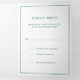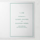 Um tom de joia simples e verde esmeralda tudo em um modelo de convite para casamento com cartão rsvp e cartão de gabinete anexados, fazer este pacote de convite conveniente e amigável em termos de orçamento. O convite para o casamento apresenta um design moderno, mas elegante, com seu monograma de duas letras no topo e seus detalhes cercados por uma fina fronteira. Todo o texto está em verde esmeralda, sobre um fundo branco e o texto e borda podem ser alterados para qualquer cor que você desejar. O cartão postal RSVP tem o seu endereço de correspondência no verso e os seus convidados são simplesmente cortados e enviados para você. NOTA: É necessário o postagem de primeira classe para o cartão postal RSVP. Carimbos postais não serão suficientes devido ao tamanho. Um design chic e na moda que é excelente para um casal minimalista.