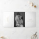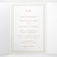 O estilo clássico falso convite de casamento dourado triplo com um design simples e mínimo com o seu monograma no topo e os seus detalhes de eventos rodeados por uma dupla borda. As fontes se alternam entre um script elegante, um serif tradicional e fontes sans serif minimalistas. O painel esquerdo é a sua placa de inscrição e o painel direito é o seu cartão-postal RSVP. As costas têm sua foto favorita. Tudo isso em um triplo convite é excelente para um casamento formal.
