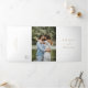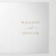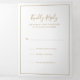 Simples modelo de Convite Tudo em Um Casamento com cartão rsvp e cartão de gabinete anexados, fazer este pacote de convite conveniente e econômico. O convite para o casamento mostra seu monograma em um círculo no topo e seus detalhes de casamento cercados por uma fina borda junto com seus nomes estão em uma elegante letra manuscrita. A parte de trás apresenta a sua foto favorita. Todos os elementos de design estão em dourado falso e podem ser alterados na ferramenta de edição de design. O cartão postal RSVP tem o seu endereço de correspondência no verso e os seus convidados são simplesmente cortados e enviados para você. NOTA: É necessário o postagem de primeira classe para o cartão postal RSVP. Carimbos postais não serão suficientes devido ao tamanho. O esquema clássico e tradicional faz esta design excelente para um casamento formal.