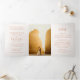 Convite de casamento tradicional tri-fold apresentando um design simples, porém elegante, com seus primeiros nomes em uma fonte serif grande.
