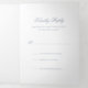 Faça uma aula em um modelo de convite de casamento com cartão de rsvp e cartão de gabinete anexados, fazer este pacote de convite conveniente e econômico. O convite para o casamento apresenta um simples design com os nomes da noiva e do noivo em uma caligrafia elegante e uma formulação tradicional. O modelo tem campos para dois hospedeiros serem listados, fazer ideal se os pais da noiva não forem mais casados e ambos acolherem o casamento. O cartão postal RSVP tem o seu endereço de correspondência no verso e os seus convidados são simplesmente cortados e enviados para você. NOTA: É necessário o postagem de primeira classe para o cartão postal RSVP. Carimbos postais não serão suficientes devido ao tamanho. Todo o texto é azul empoeirado sobre um fundo branco e pode ser alterado para qualquer cor desejada clicando no botão "personalizar". Um design clássico perfeito para um casamento formal.
