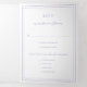 O estilo clássico, roxo / lavanda, três vezes o convite de casamento, apresentando um simples e mínimo design com seu monograma no topo e seus detalhes de evento cercados por uma dupla borda. As fontes se alternam entre um script elegante, um serif tradicional e fontes sans serif minimalistas. O painel esquerdo é a sua placa de inscrição e o painel direito é o seu cartão-postal RSVP. As costas têm sua foto favorita. Tudo isso em um triplo convite é excelente para um casamento formal.