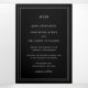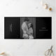 O convite de casamento preto estilo clássico triplo, com um design simples e mínimo com o seu monograma no topo e os seus detalhes de eventos rodeados por uma dupla borda. As fontes se alternam entre um script elegante, um serif tradicional e fontes sans serif minimalistas. O painel esquerdo é a sua placa de inscrição e o painel direito é o seu cartão-postal RSVP. As costas têm sua foto favorita. Tudo isso em um triplo convite é excelente para um casamento formal.