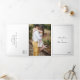 O estilo tradicional All In One Wedding Triple Invitation apresenta um simples design em preto clássico e branco com seu monograma no topo junto com seus detalhes de casamento em um roteiro elegante cercado por uma fronteira. Adicione sua foto favorita ao fundo. A cor pode ser alterada para qualquer cor desejada clicando no botão "personalizar". Esta foto All In One Wedding Trivezes Invitation with a eterno é perfeita para um casamento formal.