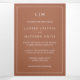Simples tudo em um modelo de convite para casamento com cartão de rsvp e cartão de gabinete anexados, fazer este pacote de convite conveniente e econômico. O convite para o casamento apresenta um design moderno, mas elegante, com seu monograma de duas letras no topo e seus detalhes cercados por uma fina fronteira. Todos os elementos de design estão em terracota / laranja queimado / ferrugem e podem ser alterados para qualquer cor desejada na ferramenta de edição de design. O cartão postal RSVP tem o seu endereço de correspondência no verso e os seus convidados são simplesmente cortados e enviados para você. NOTA: É necessário o postagem de primeira classe para o cartão postal RSVP. Carimbos postais não serão suficientes devido ao tamanho. Um design chic e na moda que é excelente para um casal minimalista.