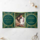 Convite Com Dobra Tripla Casamento étnico Dourado e Teal Mandala Indiano