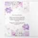 O triplo convite apresenta um design floral de estilo aquoso e macio. Agrupamento de flores delicadas em tons de roxo, lavanda e flor rosa no topo e no fundo, entrelaçados com folhas verdes pálidas e galhos sutis. O layout cria um quadro natural suave ao redor do centro, chamando a atenção para dentro enquanto mantém uma estética leve e elegante por todo o lado. A paleta de cores se sente romântica e fresca — perfeita para uma comemoração de primavera ou verão.