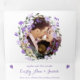 Três vezes a Elegante Cottagecore Farmhouse Wreath Outdoor All In One Elegante Ametyst Orchid Purple Lilac Lavanda Peony Floral Invitation inclui um corte e envio de RSVP de cartão-postal. Temas de casamento ao ar livre do Boho Tententeado Garden. Inclui informações de RSVP para respostas de e-mail, telefone ou site.