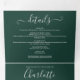 Convite de casamento esmeralda tri-fold tudo em um com tipografia elegante e sua foto especial. O convite inclui detalhes das informações do convidado para a celebração e um cartão RSVP destacável. Criado por Thisisnotme