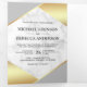 Incêndios para seus convidados com este elegante convite de casamento, com um belo design de folha de ouro hexágono falso com tipografia moderna num fundo de mármore branco. Basta adicionar os detalhes do seu evento neste modelo fácil de usar e adorar este cartão com as suas fotografias favoritas para o tornar um convite único.
