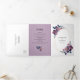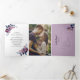Convite Com Dobra Tripla Casamento Geométrico de Script Floral Roxo