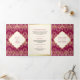 Convite Com Dobra Tripla Casamento Índio com Código QR de Lace Dourado Fuch