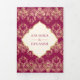 Encontrem seus convidados com isso tudo em um convite de casamento indiano apresentando uma imagem de vintage em um lindo padrão de local de ouro intrincado com o QR Code para RSVP on-line ou adicione seu URL de local para ajudar seus convidados a localizar seu local de casamento mais rapidamente. Basta adicionar os detalhes do seu evento neste modelo fácil de usar e enfeitar este cartão com a sua foto favorita para torná-lo um convite único.
