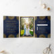 Convite Com Dobra Tripla Casamento Índio de Mandala marinho Azul e Dourado
