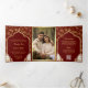 Convite Com Dobra Tripla Casamento Índio do Código QR Dourado Vermelho Pais