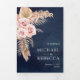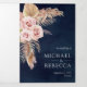 Incêndio aos seus convidados com este elegante convite para casamento, com lindas flores cor-de-rosa poeirentas e erva-pampas seca num fundo azul-marinho. Basta adicionar os detalhes do seu evento neste modelo fácil de usar e adorar este cartão com as suas fotografias favoritas para o tornar um convite personalizado único.