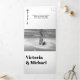 Casamento elegante e simples para a noiva e noiva modernas. Todos em um convite triplo que vem com placas de resposta RSVP, Detalhes e informações e uma foto do casal. Limpe o design com fontes tipográficas em negrito e branco. Perfeito para qualquer casamento!